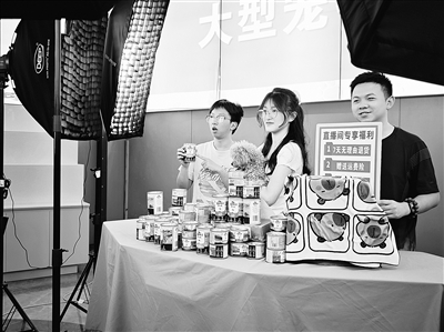 陈森(右)协助直播人员带货。