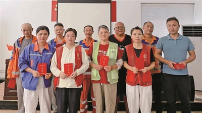 16本红彤彤的毕业证书终于找到了主人。他们有的满头白发,有的皮肤黝黑,有的面带羞涩,但都穿着同样的环卫工作服。