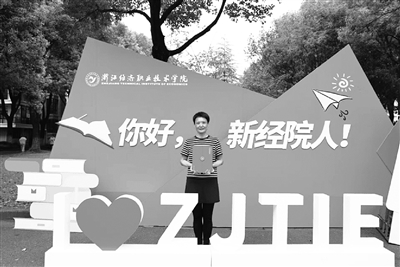 新生报到当天,身体逐渐康复的丈夫特意陪同赵文慧来到浙经院办理入学手续。